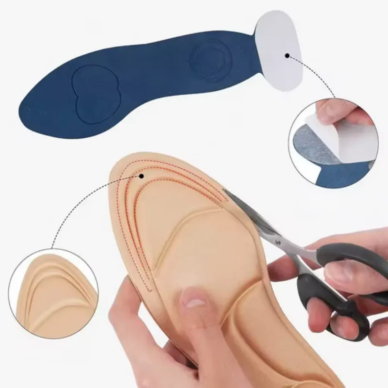 Wkładki wykonane są z miękkiej pianki 4D w kolorze cielistym, która idealnie stapia się z wnętrzem jasnego buta. Dzięki możliwości docięcia, łatwo dopasujesz je do swojego rozmiaru (zakres 35-40).